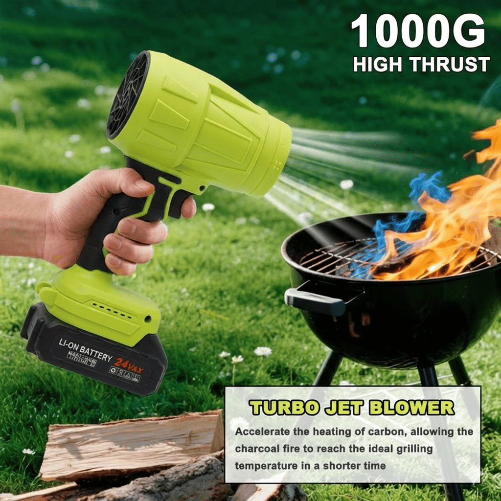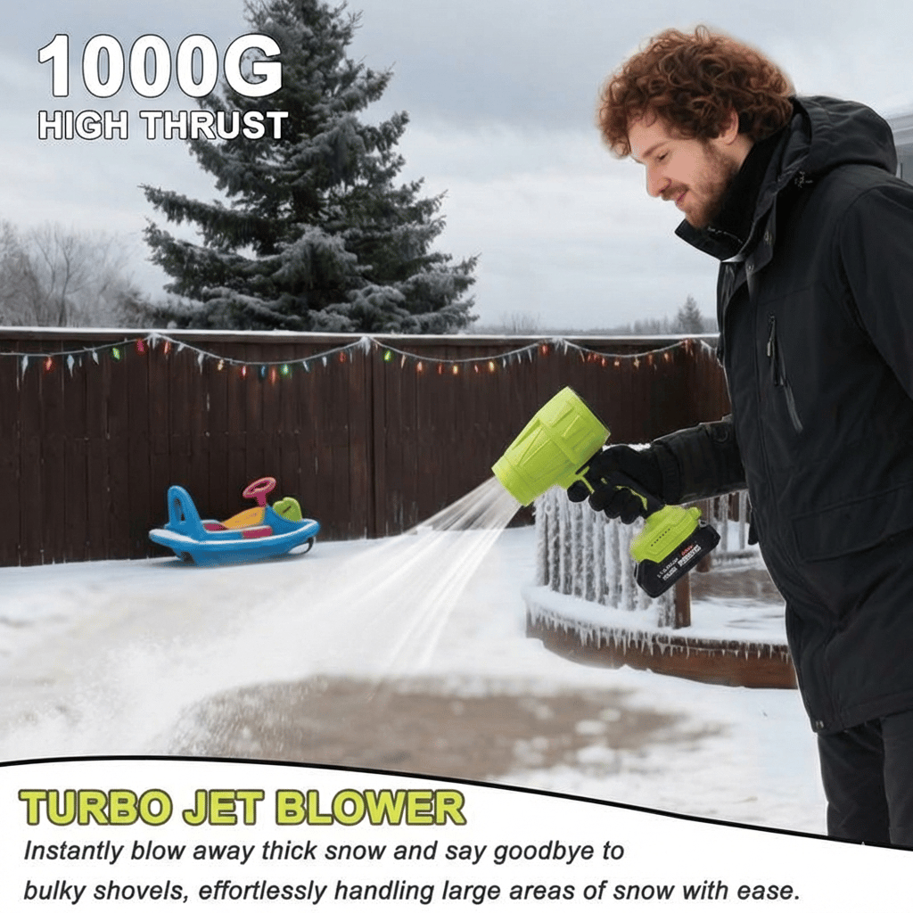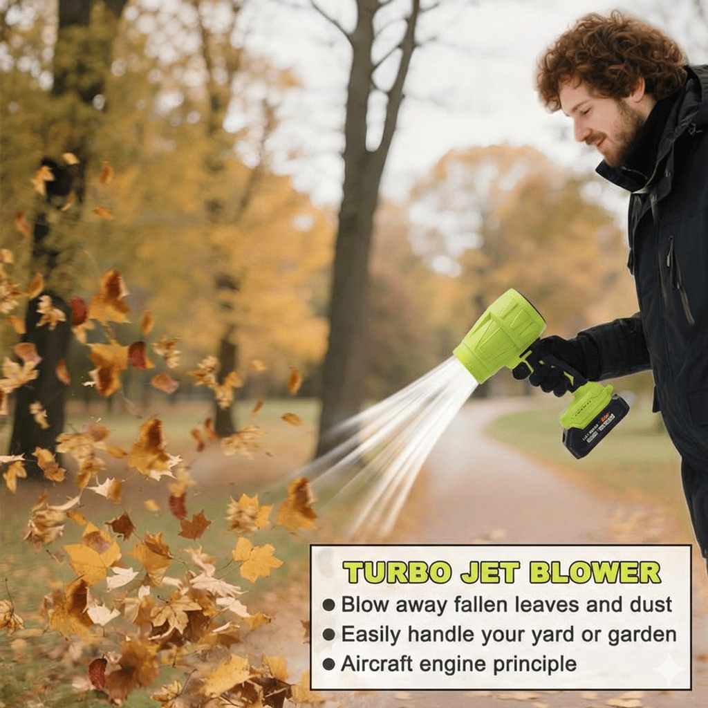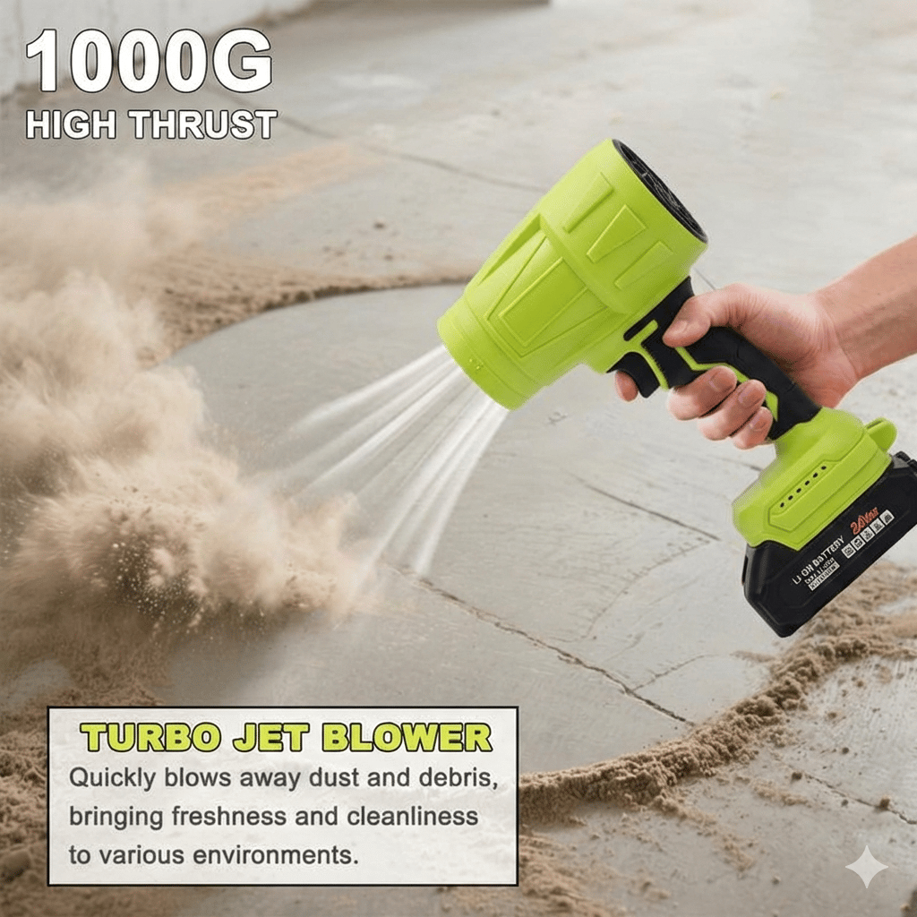 【Powerful turbine technology】Imagine cutting your cleanup time in halfwith a supercharged blower that fitscomfortably in one hand. The Turbo Jet2.0's turbine technology delivers aninsane 1000g of airflow, obliteratingleaves, dust, and even stubborn debrisfrom your yard, garage, or car. Plus, itscordless, lightweight design gives you thefreedom to move anywhere-makingyard work and outdoor cleaning fastereasier, and completely hassle-free